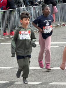 Während die großen Marathonläufer eine Distanz von 42 km absolvieren, laufen die Kinder traditionell einen Zehntel der Strecke. Für ein Grundschulkind sind 4,2 km aber eine lange Distanz, die auch längst nicht alle durch liefen. Das Ziel im Blick und die fröhliche Stimmung genießend schafften aber alle Kinder die Strecke und wurden schließlich mit einem Getränk und kleinen Leckereien, vor allem aber mit einer Medaille, belohnt.