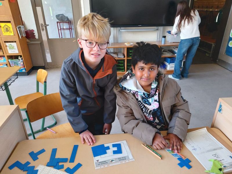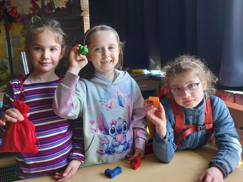Es galt Somawürfel nach Vorlage zu bauen, Figuren zu spiegeln und zeichnerisch festzuhalten, geometrische Aufgaben zu lösen oder Zauberzahlen zu errechnen. Die Initiatorinnen des Mathesams, Christine und Ulrike Ritter, hatten sich wieder originelle und ansprechende Aufgaben ausgedacht und alles aufwändig vorbereitet. Tatkräftig wurden sie von Kolleginnen aus dem Swatten Weg unterstützt, die bei der Durchführung, beim Auf- und Abbau halfen und ein wunderbares Kuchenbuffet für helfende Eltern zur Verfügung stellten. Natalie Bade, Anja Hummel und Merle Prahl freuten sich über die große Beteiligung von Kindern aus ihrem Standort und genossen wie alle das fröhliche Miteinander auf dem Schulgelände und zum Abschluss in der Pausenhalle.