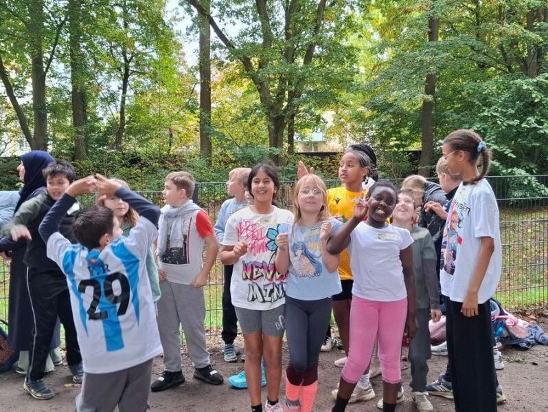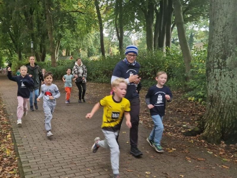 Am 8. Oktober liefen 700 Schüler und Schülerinnen der Fridtjof-Nansen-Schule Runde um Runde im Grünzug zwischen ehemaligem Ententeich und Kleingartenverein. Der Sponsorenlauf war von der Fachleitung Sport organisiert worden und diente der Finanzierung der beiden Trommelapplauswochen im Frühjahr 2026. Dann kommt nämlich ein Team von Profis (Trommelapplaus) in die Schule und wird die gesamte Schulgemeinschaft ins Trommelfieber versetzen. Jeweils eine Woche lang werden alle Klassen im Swatten Weg und im Fahrenort vormittags trommeln und das Gemeinschaftsgefühl, die Gute-Laune-Musik und das Trommeln genießen. Das Projekt kostet viel Geld, deshalb wurden alle Kinder der FNS aufgefordert, Sponsoren zu finden, die ihnen für jede gelaufene Runde einen Beitrag zahlen würden. Mamas, Papas, Großeltern, Nachbarn, Freunde, Tanten und Onkels, aber auch Geschwister hatten vorher auf den Sponsorenverträgen unterschrieben und eine bestimmte Summe angegeben.